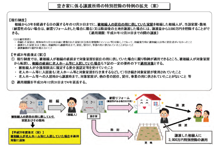 そして、税制による対策としては、平成28年度税制改正により、「居住用財産(空き家)を譲渡した場合の3,000万円特別控除の特例」が創設されました。