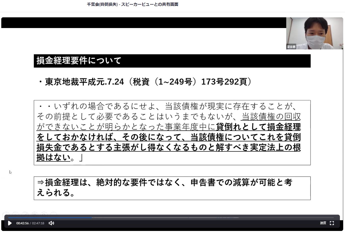 全体としては、基本類型である9-6-1~3(法律上の貸倒、事実上の貸倒、形式基準による貸倒)や子会社等への支援損である9-4-1~2の部分、それらを含めた裁判実務に関する研究発表でした。