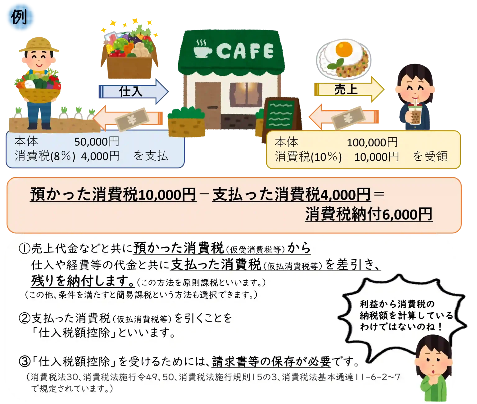上記の図のように、利益から納税額を計算するしくみではありません。