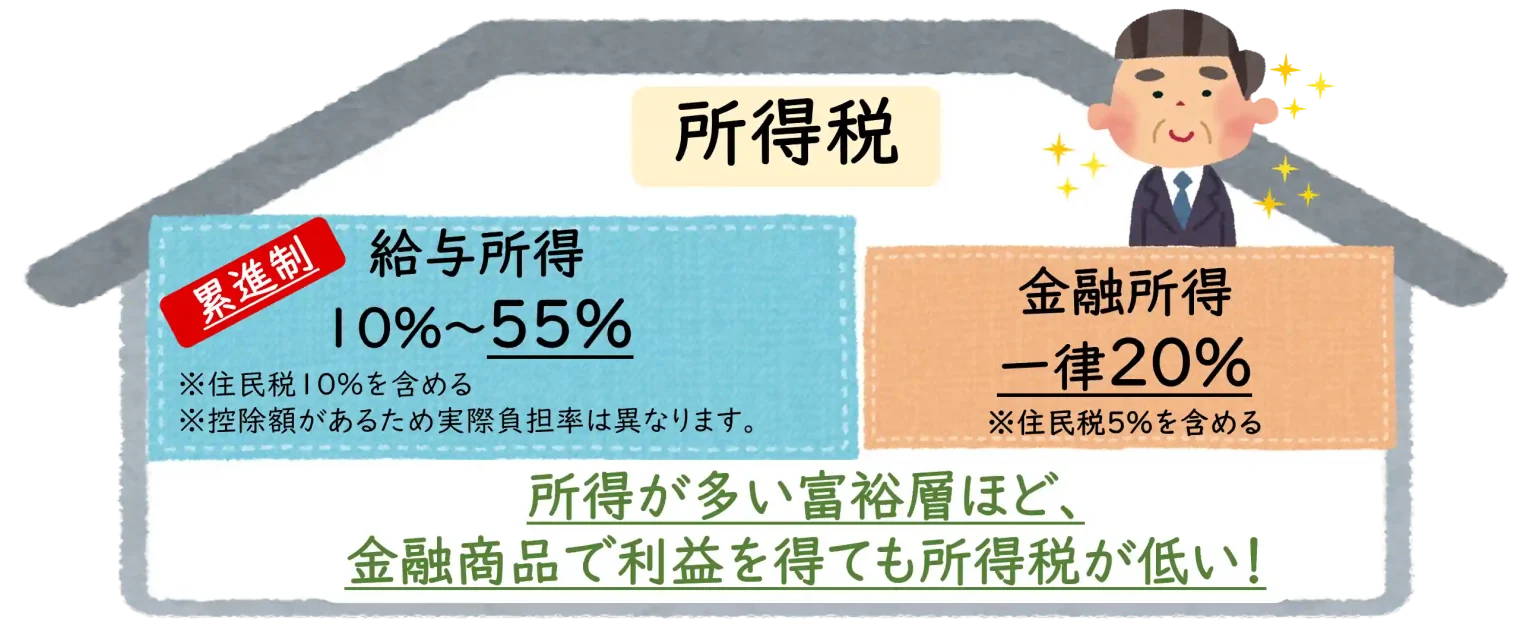 株の売買など金融商品で得た利益は「分離課税」の一律20%(復興特別所得税込みで20.315%)の税率が課されています。