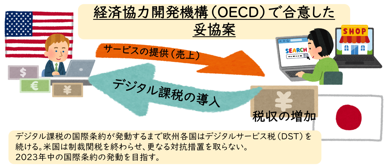 この対立の構図は、10月8日のOECDの会合で「2023年中にデジタル課税を導入する」という妥協案に各国が合意し、一旦の解消となりました。